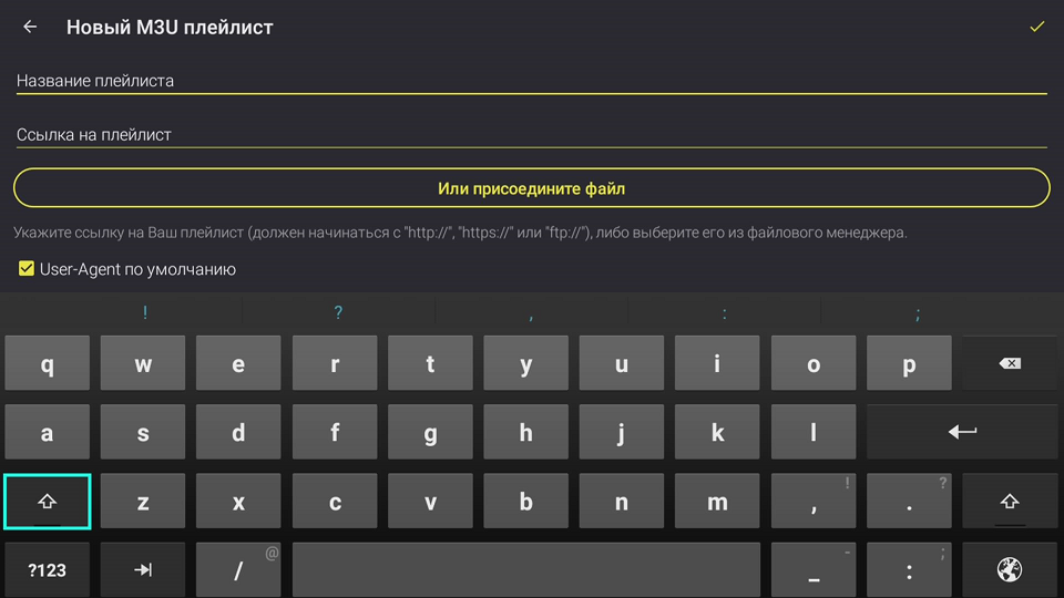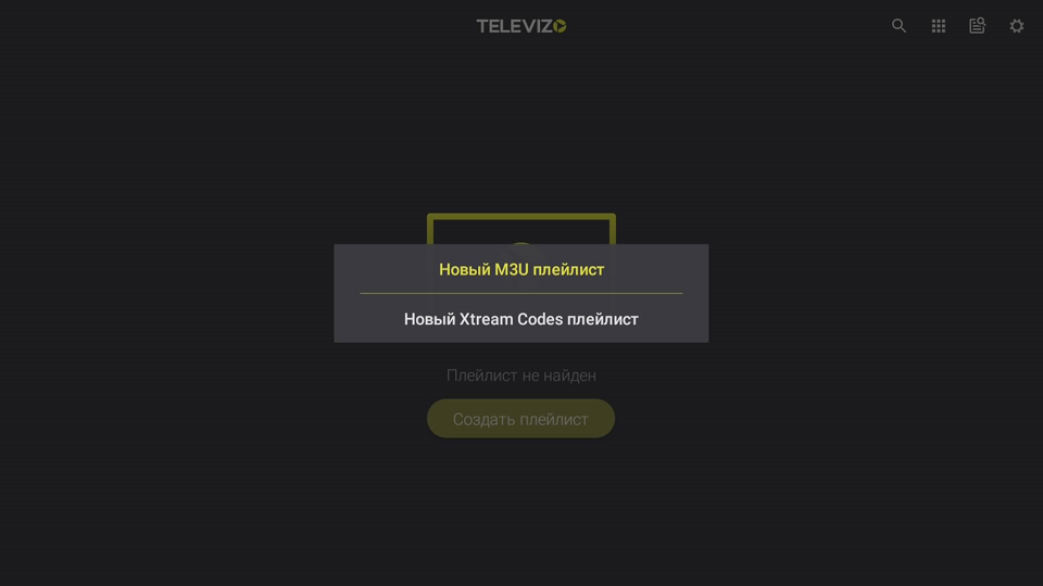 Нажимаем Создать плейлист и в появившемся меню выбираем Новый M3U плейлист